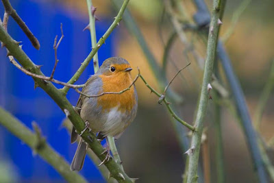 That bird might be a blue bird.Its a little similar to a robin...but smaller and I do see some blue. Sweet bird.Rosanne